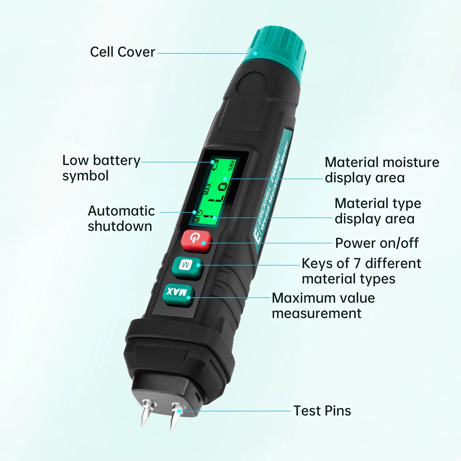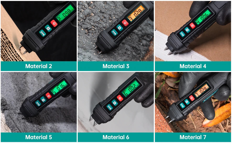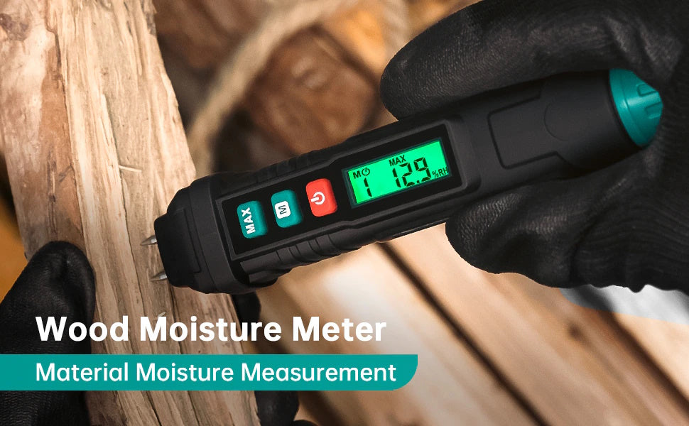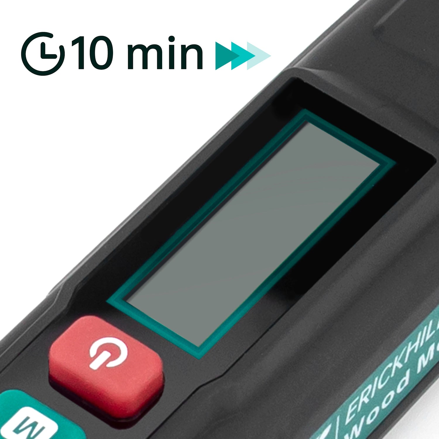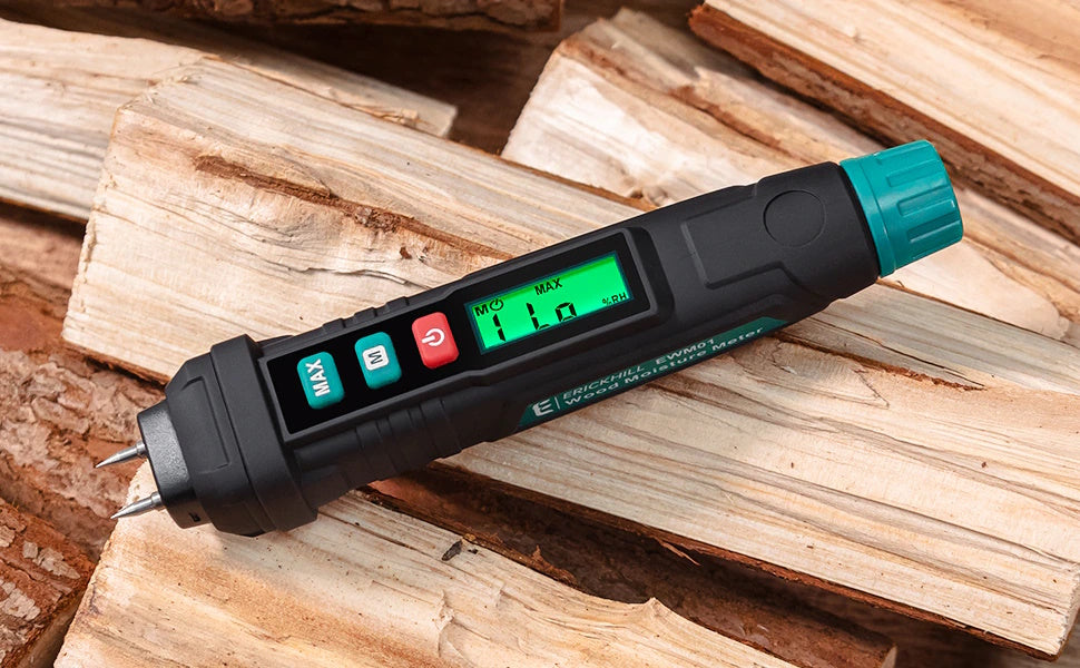 The three-color backlight (red/orange/green) indicates high, medium, and low moisture content, allowing quick and accurate identification of dampness. The ERICKHILL moisture meter is the ideal tool for pinpointing areas of moisture buildup.