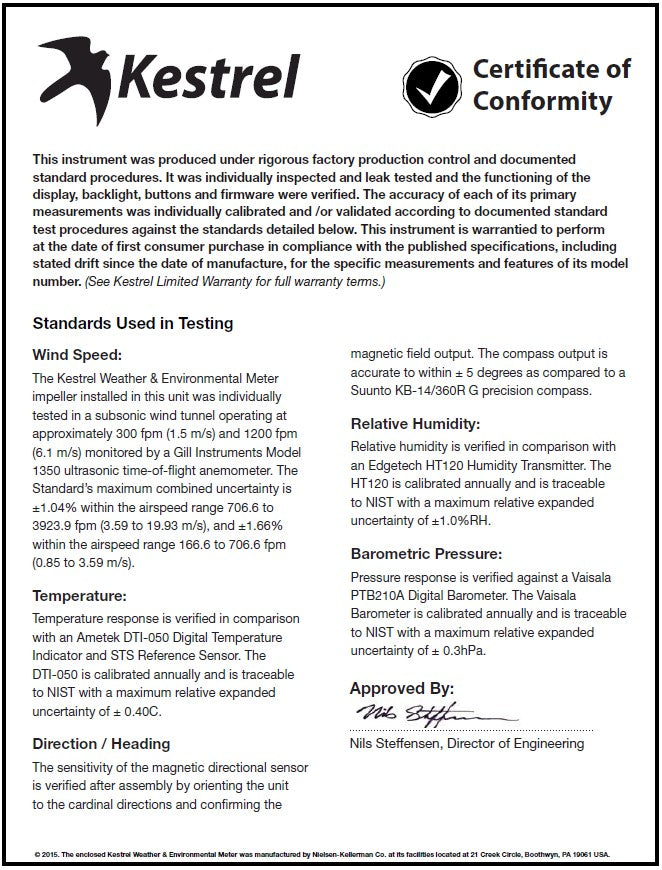 • All Kestrel Instruments are guaranteed brand new and fully tested.