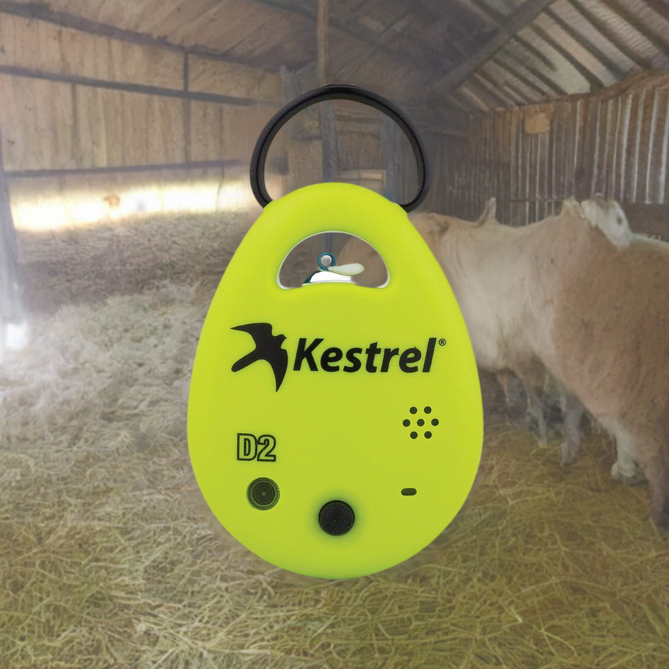 Mantente informado sobre las condiciones de calor en el establo o durante el transporte con el Monitor de Estrés por Calor para Ganado Kestrel D2. Las múltiples mediciones ambientales integradas significan que tu DROP D2 también puede usarse para muchas otras aplicaciones agrícolas, incluyendo áreas de almacenamiento de heno y alimento y invernaderos.
