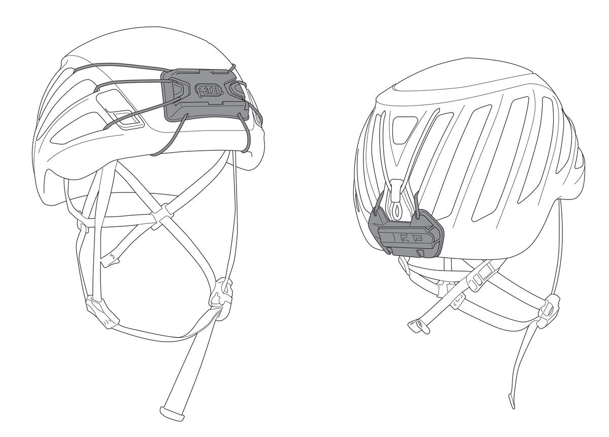 The DUO HELMET ADAPT yra nuimamas priedas, skirtas pritvirtinti DUO RL arba DUO S žibintą prie Petzl šalmo. Dėl mažesnio svorio ir geresnio stabilumo žibintas ir jo baterija montuojami tiesiai ant plokštelių be galvos juostos.